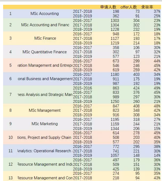 让我们来看看曼彻斯特商学院专业录取率,为了方便大家理解,我们把它做成了表格 。