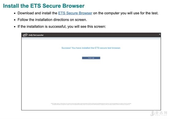 考生须安装ETS安全浏览器(ETS Secure Browser)及ProctorU监考系统软件,并在考前进行软件测试。
