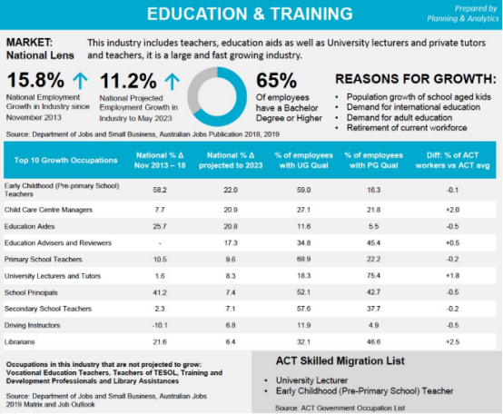 在澳洲,幼教一直都是紧缺职业,不仅在过去的6年间一直都是发展最快的职业(增长率为58.2%),而且直至2023年,幼教老师都是在整个教育与培训行业中,预计就业增长最快的职业(将增长22%)。▼