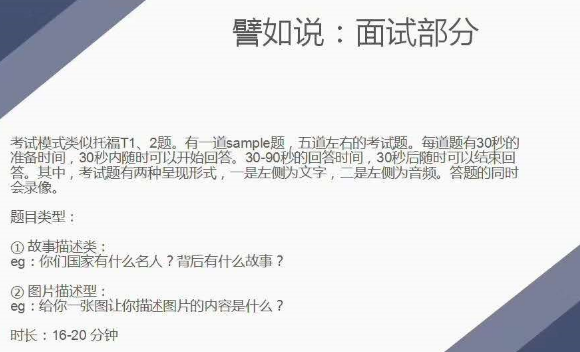 开放测试则包含“采访录像”和“写作样本”两部分,即根据特定的主题录制一段口语视频及写作一篇文章。