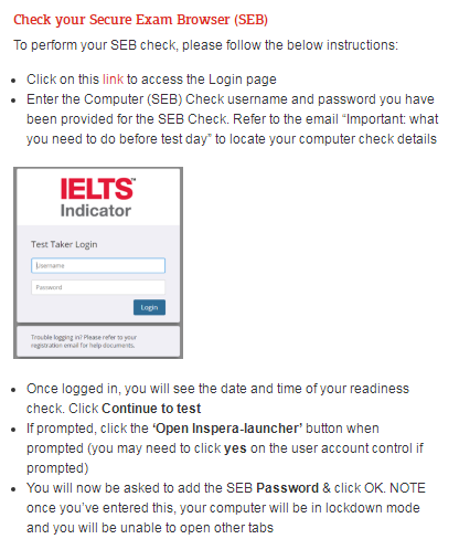 ✔ 为保证IELTS Inicator考试的安全性,大家参加考试需要使用专门的安全考试浏览器—SEB。