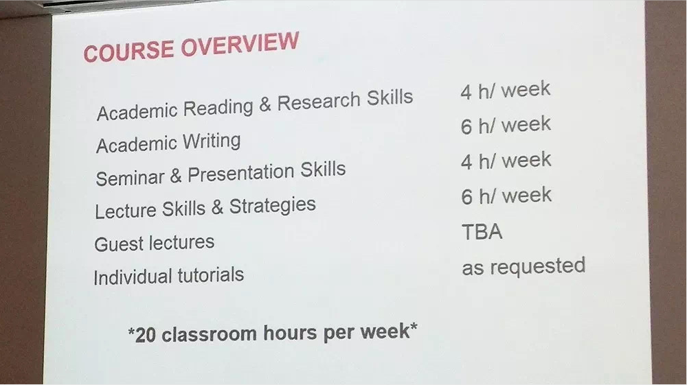 值得一提的是,除了课堂上的听力训练,语言学校还会安排若干次大讲座(Lecture),由某位老师当担讲师,讲述某一话题,类似TED的现场版。各个语言班的同学都会被要求参加,带上笔和纸,边听边记录下你觉得有用的信息,作为reference引用到之后的写作练习中。