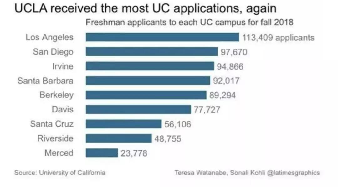 在uc众多分校中,ucla一直都是申请人数最多的学校,没有之一。