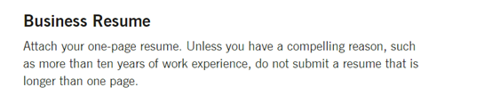2年全日制 MBA申请要求: 工作经验并不是强制要求的,但是经历的多样性以及申请人对工作环境产生的影响才更为重要,除非工作经验 10年以上,简历建议不要超过一页。