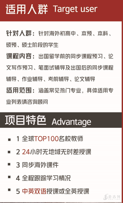 今天呢,唐老师给各位带来的礼物,除了日常的心灵鸡汤和自己以前学生的过往经历,这次是金吉列的全球优才护航计划! 我们的全球优才护航正是为了帮助学生们成功渡过这几年,也真正做到了留学的全程服务标准。
