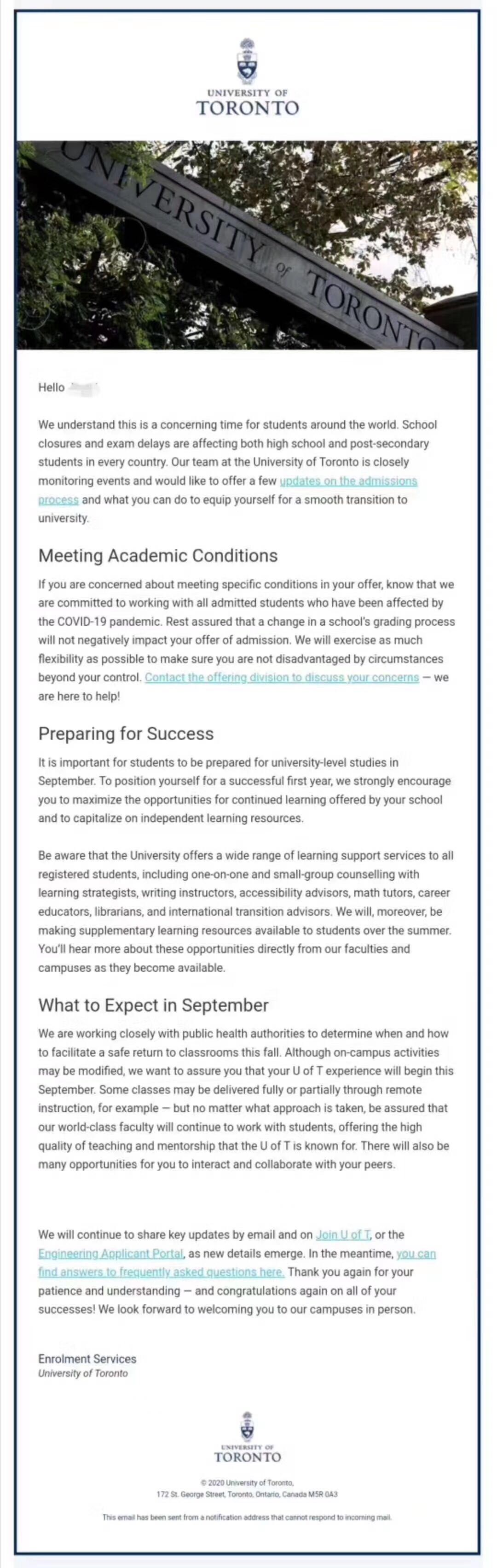 多伦多大学重要通知