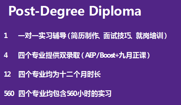 最近有不少本科毕业的同学来咨询, 他们不满足于只拥有一个本科学位 ,觉得需要开阔一下眼界,因为他们始终对自己所拥有的知识和视野不满足,总觉得需要多出去走走,想要继续学习更多东西以便以后能有更好的发展。觉得应该选择一个university去读一个硕士学位。 但硕士太学术而且申请较难 ,本科专业的基础知识已经学得很扎实了,实在没必要再学一遍理论。 想要一个时间短、技术含量高、方便在国外找工作、以后有利于移民的的学历凭证?