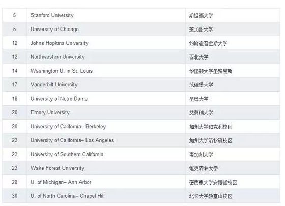 剩下的是属于3的学校(SAT or ACT),在TOP 30里的名单是: