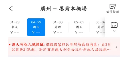 目前,通过在各大售票平台上查询后可以看到,在6月1日前,没有任何往返中澳的航班出售。