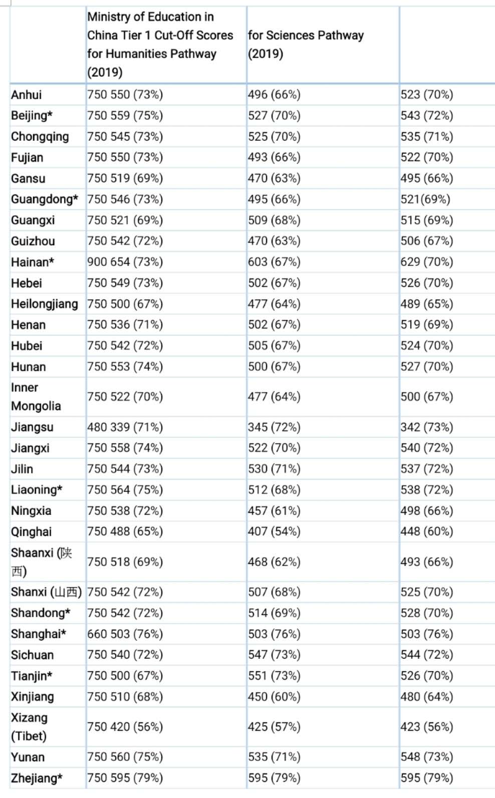 高中毕业证书(75%以上);520/750高考(70%);高考数学100/150 (70%)