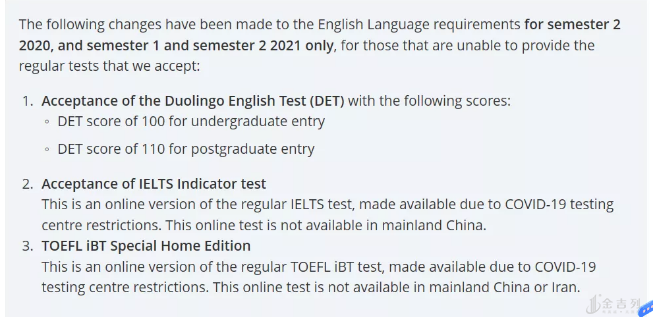 鉴于目前全球多地因受疫情影响而无法组织雅思、托福、PTE等常规语言考试,奥塔哥大学目前接受申请者使用以下多种语言能力测试来进行申请: