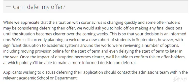 后续会不会有更多英国大学不接受延期政策我们还不得而知。也有很多学校表示接受延期,但是不同专业会有所差别。