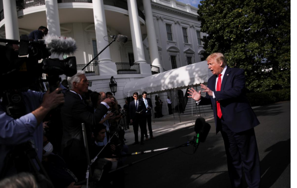 特朗普当地时间5月1日在白宫对记者们发表讲话(图源:路透社)