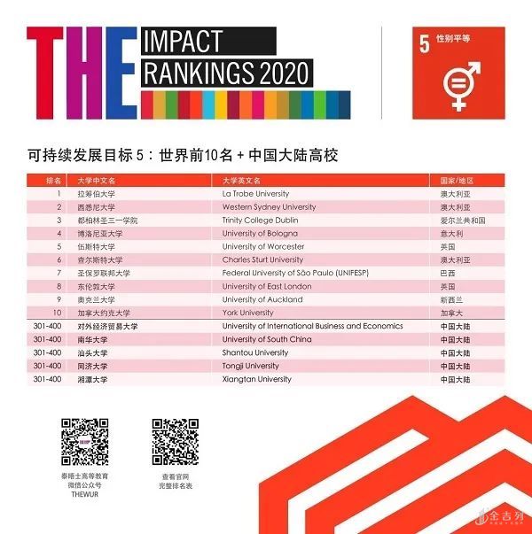 在单项排名上的表现也非常突出,性别平等:全球第3,可持续城市与社区:全球第5,减少不平等:全球第6.