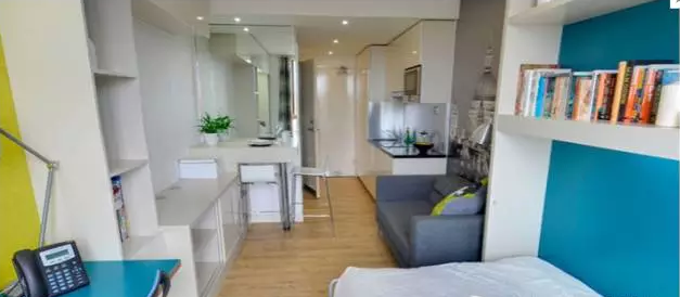 一般称为单人套房或单间公寓,类似于我们现在说的开间。 Stuio是一种非常常见的房型,大小从12平方米到30平方米不等,房间会提供床、书桌、衣柜、卫生间、浴室、厨房等设施。Stuio中的厨房都是开放式厨房,是在一进房间有个区域具有厨房设备,这种厨房不太适合做中式炒菜等油烟比较大的菜式。Stuio在所有学生公寓类型中算是比较贵的房型,比较适合经济宽裕喜欢的学生居住。