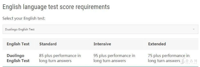 莫那什接受了uolingo的考试成绩和cambrige linguaskill英语测试成绩,不过提供这些成绩仍然需要上语言班。