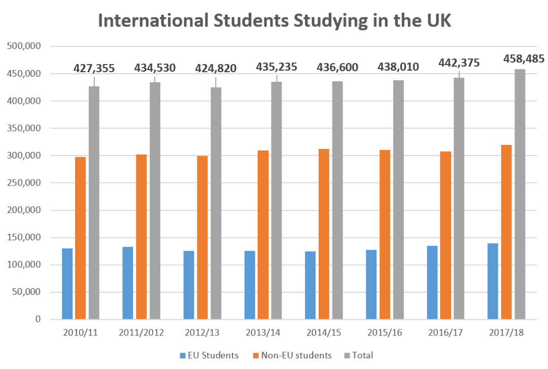 英国是世界上第二留学大国,根据2017/18年数据统计,英国接收了超过450,000名国际生。到2030年,英国政府计划将留学生数量进一步提高到600,000名。