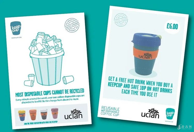 为了减少一次性纸杯和软性饮料瓶的使用,学校设计了兰开夏款式的杯子,只要购买就可以免费获得热饮,再次使用杯子购买热饮时可以优惠10P;在教学楼、健身房等人流量较大的地方,学校安装了饮用水机,学生可以用自己的水杯免费盛水喝。