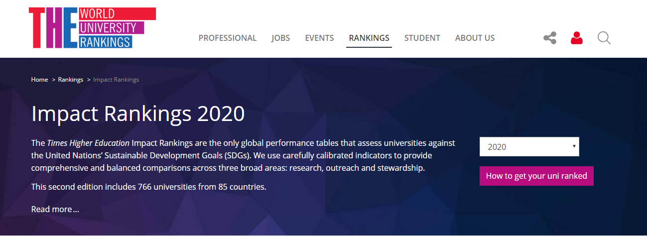 作为第二界泰晤士高等教育世界大学影响力排名,与其他的排名采用的论文发表、录取成绩、行业声誉等评判标准不同,泰晤士高等教育世界大学影响力排名是根据联合国可持续发展目标(SDGs)的仅有全球排名。该排名使用了2005年联合国在峰会上通过的17个可持续发展目标(SDGs)作为测评标准,旨在彻底解决社会、经济和环境三个维度的发展问题,转向可持续发展道路。