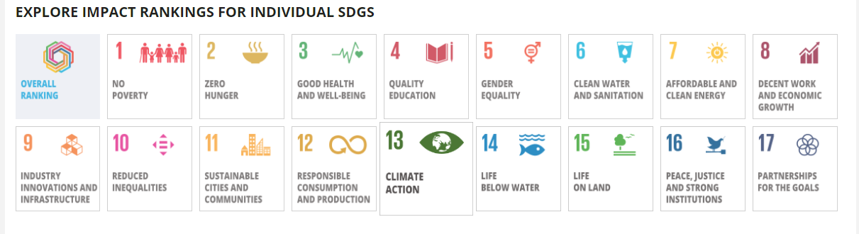 该排名是依据下图的联合国17项可持续发展目标的指标对大学进行评估: