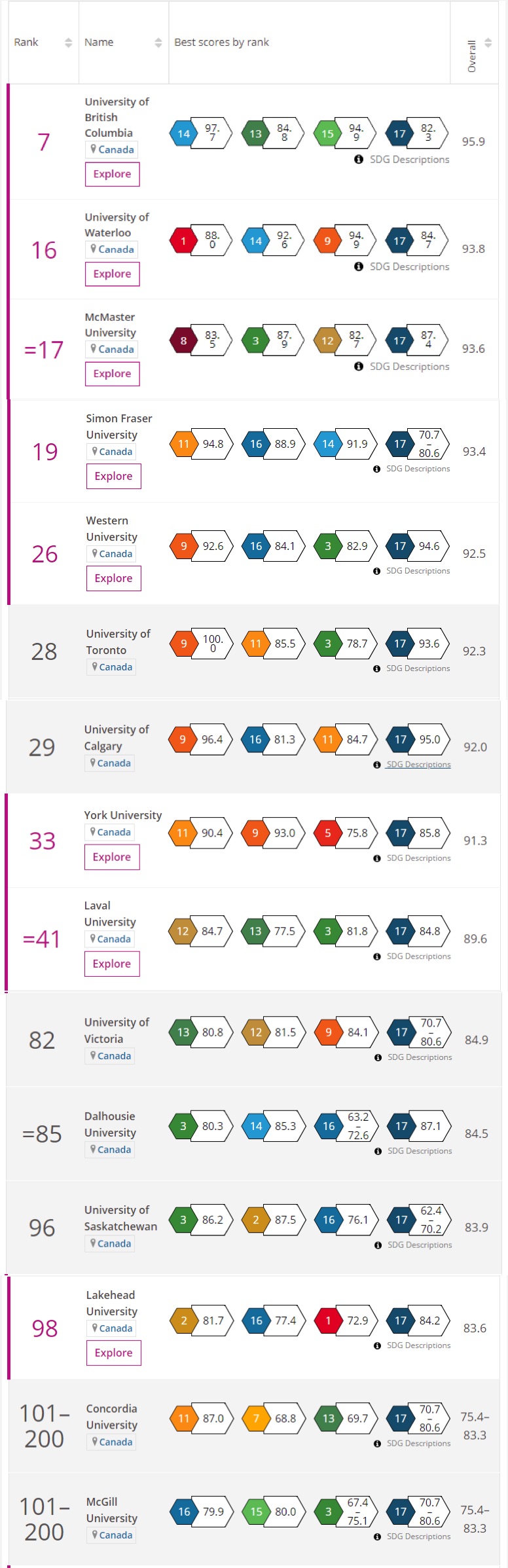 泰晤士高等教育于近日发布了第二届高等教育世界大学影响力排名,加拿大13所大学入围总体排名前100!