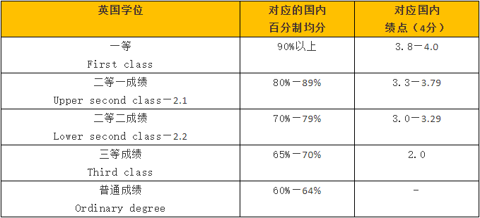那么2.1,究竟需要多少分?让我们来看看英国学位与国内均分之间的比较: