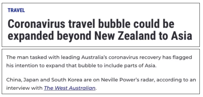 他说:“我认为有机会对特定的目的地和特定的检测和评估,这样的话,旅行就可以提前开始。我们与日本、韩国和中国有非常重要的贸易联系,因此重新开放边境的几率很大。”