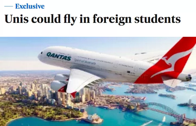 专家委员会建议,在严格的防疫条件下,可以让成千上万名海外留学生返回澳洲上课!并且建议大学可以和政府合作,让这些在澳洲境外的留学生能够迅速获得签证,并尽快回到澳洲。同时还考虑,让高等教育部门应当与政府合作,以包机的方式让留学生返澳!
