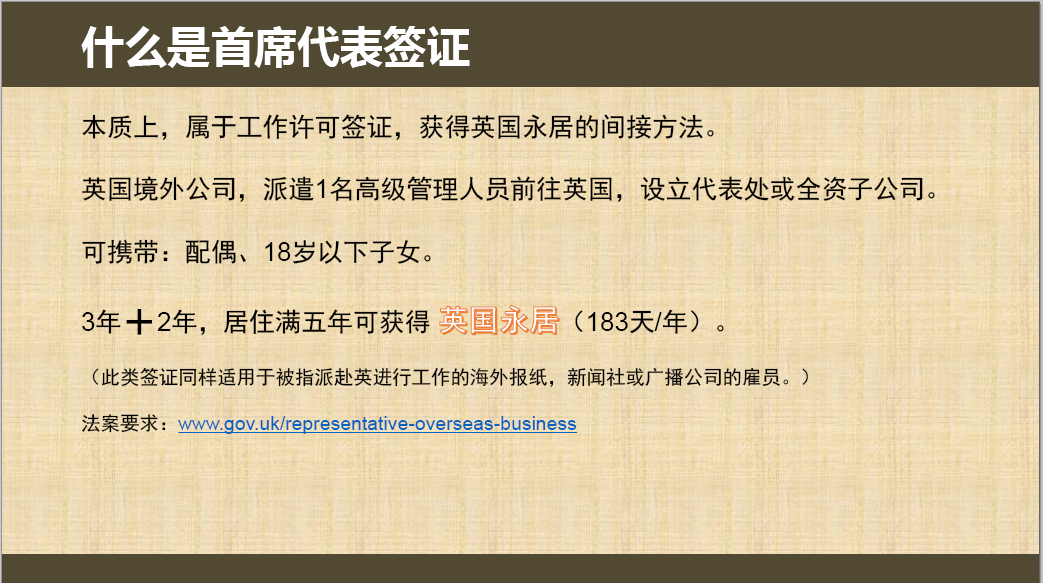 英国首席代表(工作)签证是通向英国永居移民通道的有效途径: