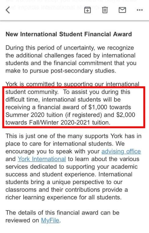 近日,有约克大学的同学发现自己收到了校方发来的一封邮件,称会为所有国际留学生提供另一份补贴!(与之前领到的COVID-19疫情补助不冲突)