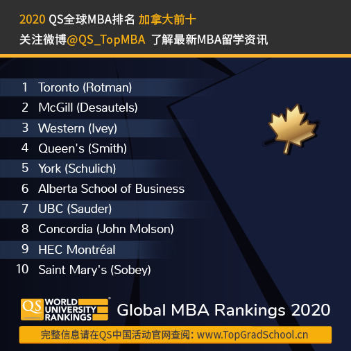 全球高等教育研究机构QS(Quacquarelli Symons)发布了 2020年 加拿大MBA排名 。