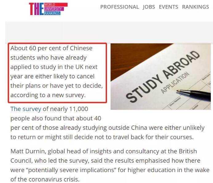 从侧面反映出,英国政府希望吸引更多的中国学生来英国。但是,由于疫情影响,一项新的调查显示,明年已经申请去英国学习的中国学生中,约有60%可能会取消他们的计划或尚未决定。