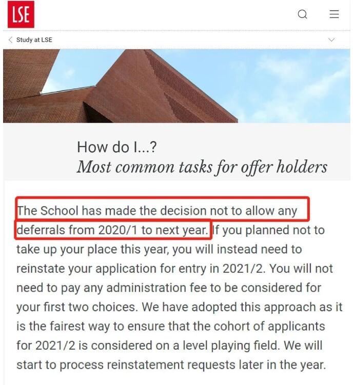 现在很多大学不会接受2020年收到Offer的同学延迟一年入学。比如:LSE、曼彻斯特大学、爱丁堡大学、布里斯托大学部分专业都已经宣布这个消息。
