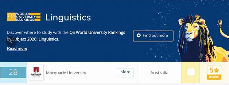 根据2020 QS世界大学学科排名(QS Worl University Rankings by Subject 2020),麦考瑞大学语言学(Linguistics)在此榜单中排名世界第28位,悉尼地区排名第一。