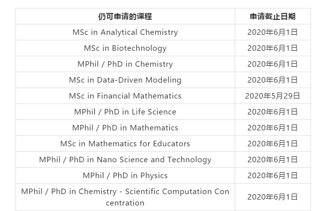 > 香港科技大学仍可申请的课程汇总