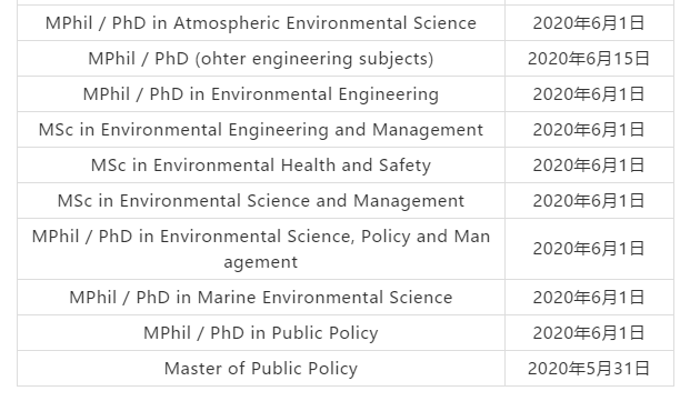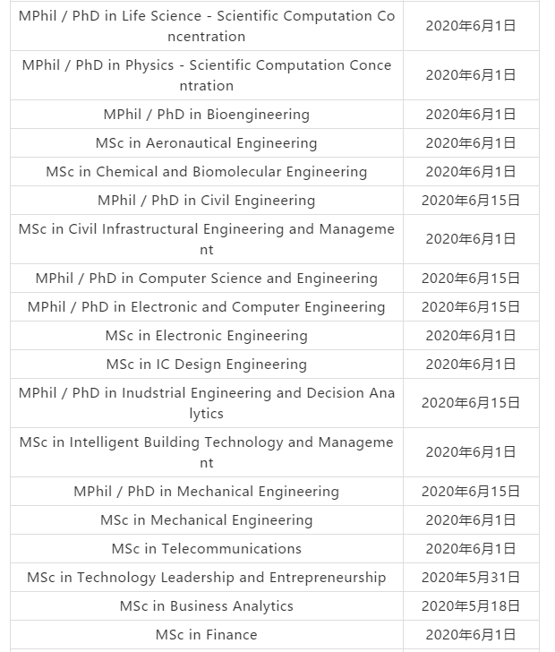 以下是香港科技大学课程最新的申请截止日期!
