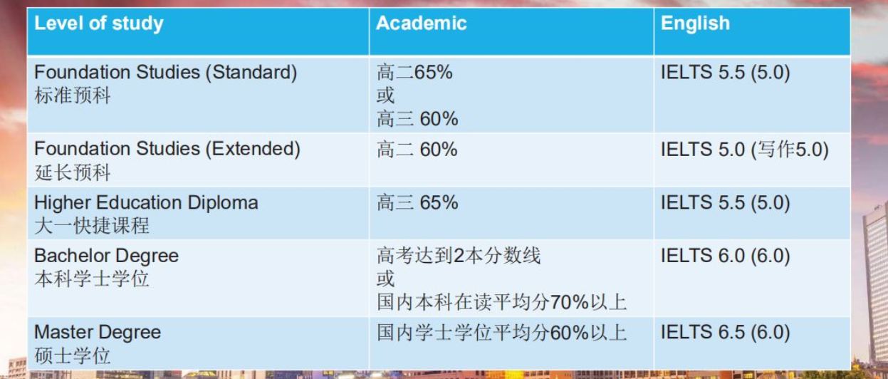 - 学生成绩未达到本科直入标准的申请者可以选择3种过渡