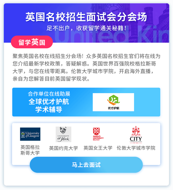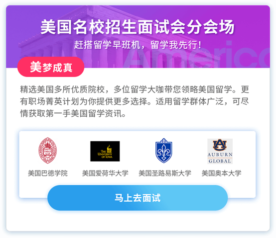 海外名校在线招生,留学梦想触手可及 直播现场,优质名校招生面试官将在线一对一进行测评、面试和评估,为你答疑解惑。 只要你足够优秀,还有机会现场拿下名校 OFFER ,直接成为名校的一员!