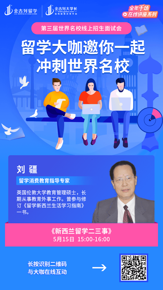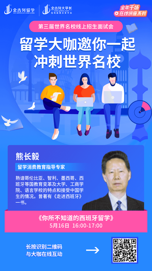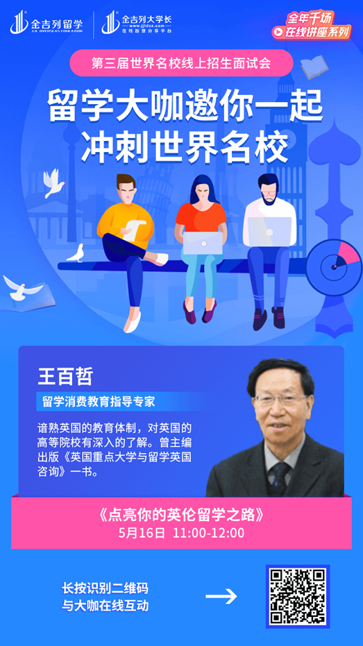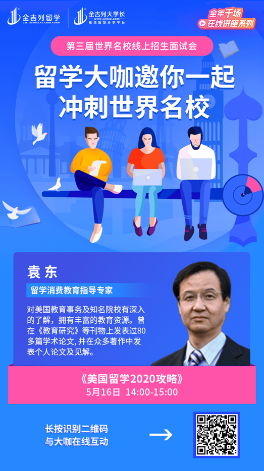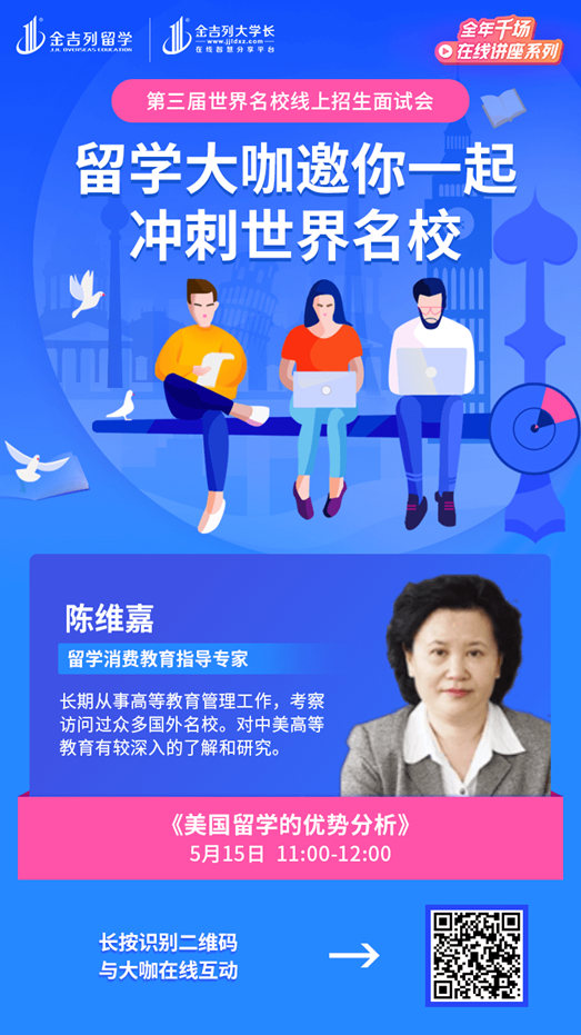 为帮助有留学意向的家庭合理规划留学, 金吉列大学长第三届世界名校线上招生面试会 即将于 5 月 15 日正式开启!