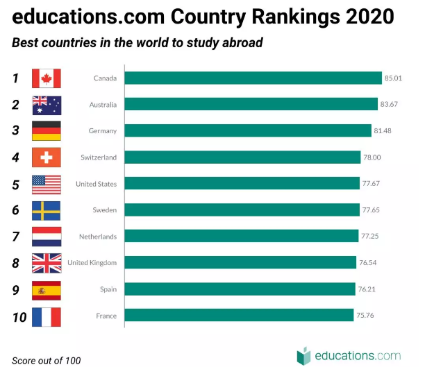 全球 教育网发布了2020年全球最佳留学国家排行榜TOP10。