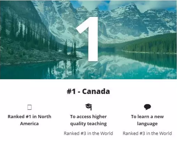 加拿大雄踞榜首,澳大利亚位居第二位,德国排名第三,而美国和英国分别位居第五位和第八位。