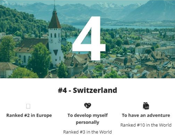 瑞士是一个美丽的国家,拥有壮丽的景色和世界一流的城市,也被认为是世界上最安全的国家之一,因此学生们可以放心探索。