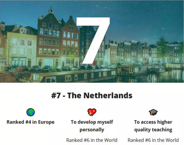 如果舒适的咖啡馆、广阔的郁金香和运河旁步道引起了大家的兴趣,那么荷兰应该是大家的留学目的地!荷兰的大学以其很高的英语水平而闻名,会提供英语课程,因此国际留学生可以找到适合自己的课程。并且,荷兰语也被认为是最容易学习的语言之一!