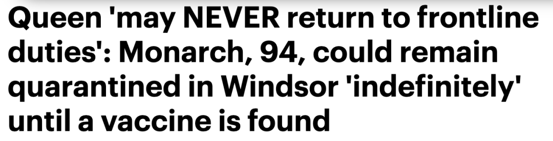 不少媒体在报道中预测,如果新冠病毒对人类健康的威胁持续几年的时间,女王可能永远无法出席皇室的正常工作,而年过九旬的女王也将可能无限期被隔离在温莎城堡,直到疫苗或治疗方法被发现。