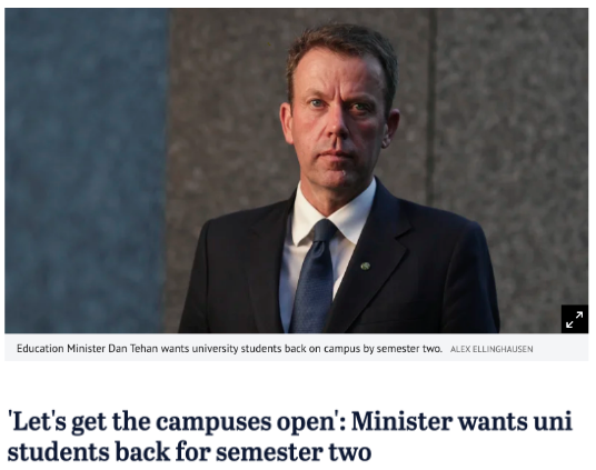 “我们要做的第一件事就是让我们的大学校园重新开放,面向国内学生和现在已经在境内的国际学生。”。教育部长表示,联邦政府希望大学“在安全的情况下,在第二学期恢复线下教学。