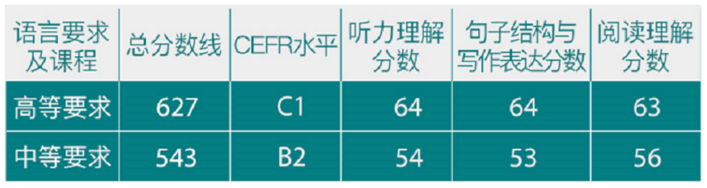 院校通常会根据自身院校项目所需要的英语熟练程度,将托福ITP考试分数线和其他英语语言能力测试的分数线设置在 CEFR 标准等级中的 C1 等级或 B2 等级 。