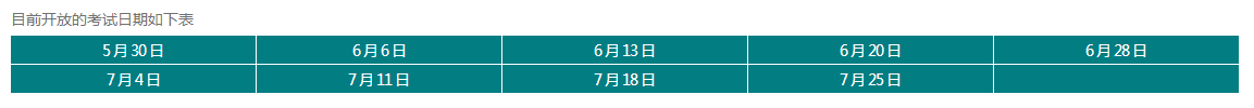 5月15日今天开放考试报名。第一场考试安排在5月30日,5、6、7月的周末可考。