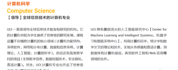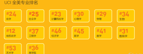 UCI 在最优秀的 100 所建校历史不足 50 年的学校中排名全美第一、世界第五,其既有大型科研学校的教学实力,也有小型院校的友好氛围,拥有诸多优秀的研究生专业包括法律、商学、工程学、人文学科、经济学、医药学、护理学、化学、生命科学、物理学、数学、计算机科学。加州大学欧文分校虽然建校时间短,但在 2020 年 USNEWS 大学(本科)排名中位居第 36 位 ;在 2019 年 USNEWS 公立大学排名中位居第 7 位。