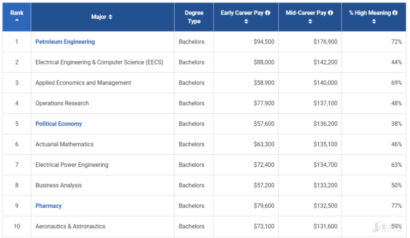 众所周知,专业是决定学生毕业后第一份工作薪资高低的关键因素。以下是每种学士学位中的最高薪专业: