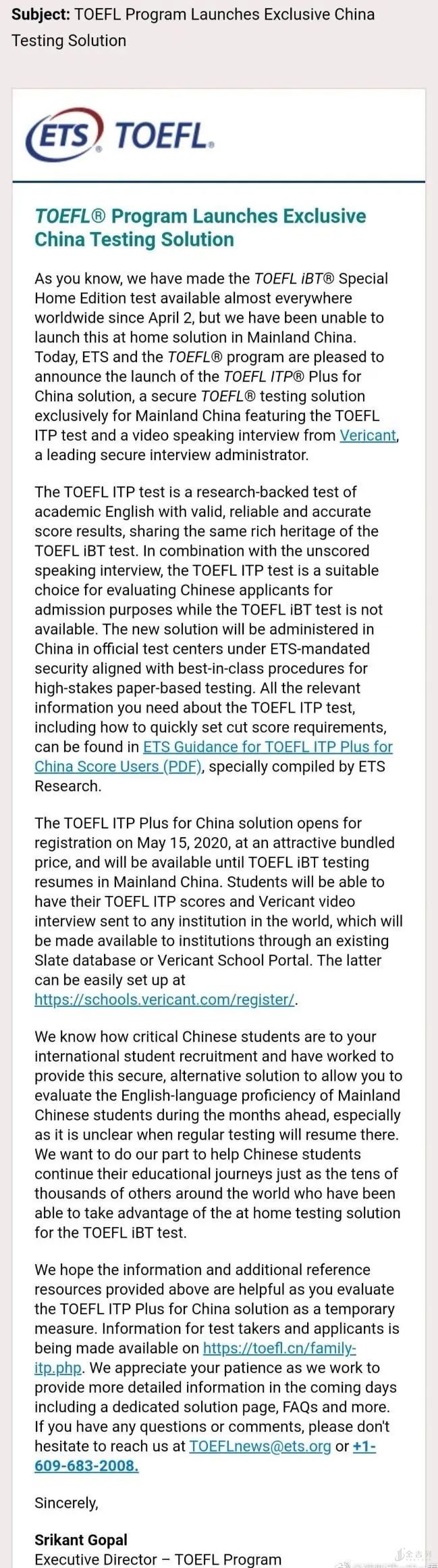 ets应该已经跟某些大学机构打过招呼了,说明了“toefl itp plus”的情况。但具体哪些学校哪些专业和项目承认以这个成绩替代托福成绩,还未知,要等接下来的公告。这些大学机构会如何认定“toeflitp plus”成绩也未知(即是否完全替代托福成绩,还是需要搭配语言课或其他测试成绩),需等通知。当然对分数的要求暂时也未公布。